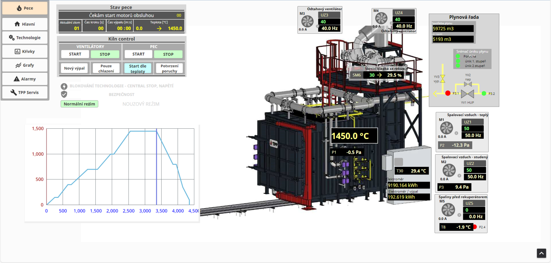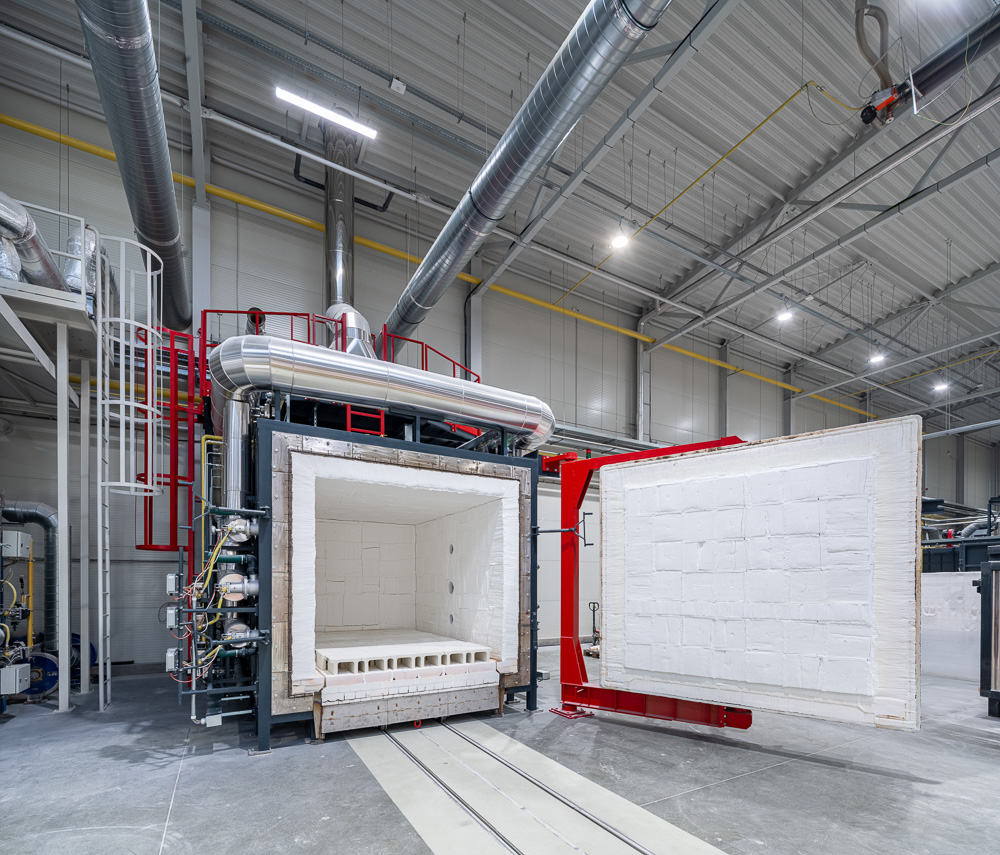Výpal do teplot až 1 800 °C. Efektivní plynové topné systémy s centrálním rekuperátorem, předehřev spalovacího vzduchu až do 600 °C. Elektrické odporové systémy s možností cirkulace vzduchu.