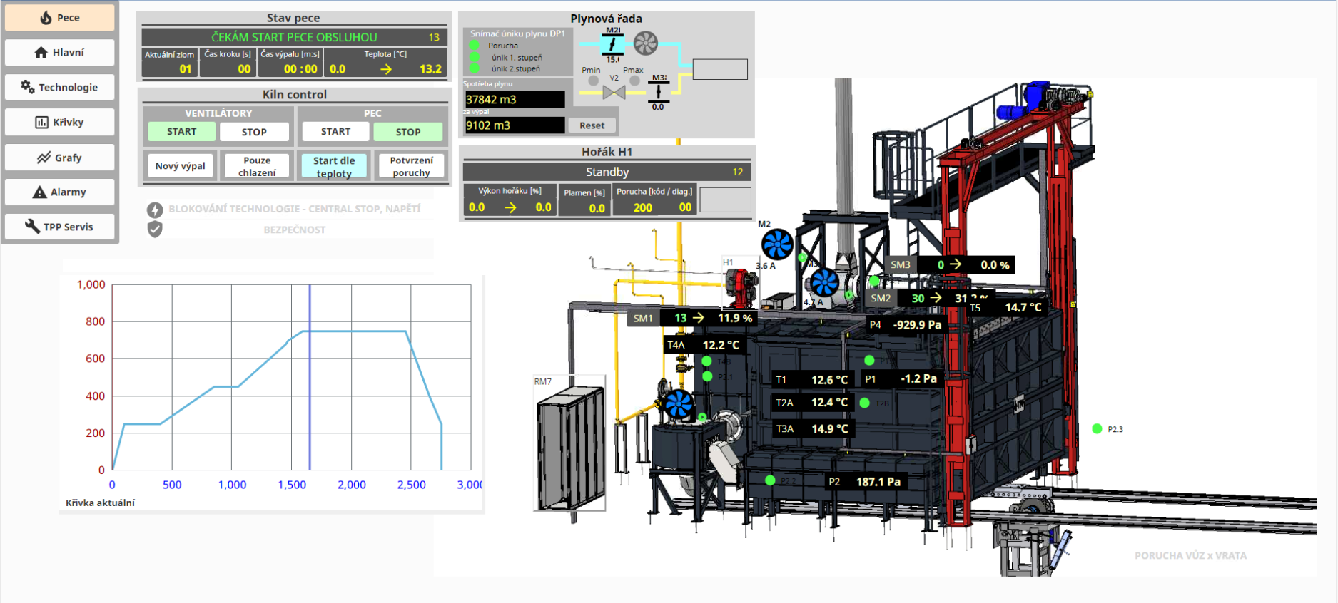 Výpal do teplot až 1 800 °C. Efektivní plynové topné systémy s centrálním rekuperátorem, předehřev spalovacího vzduchu až do 600 °C. Elektrické odporové systémy s možností cirkulace vzduchu.